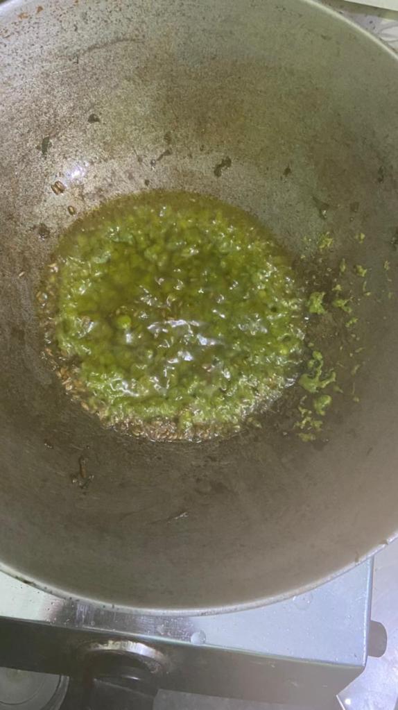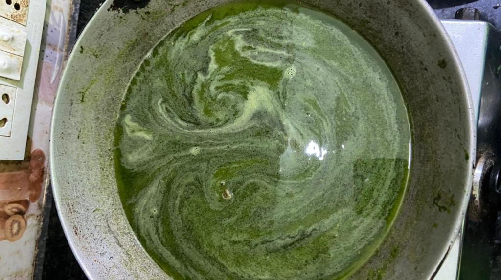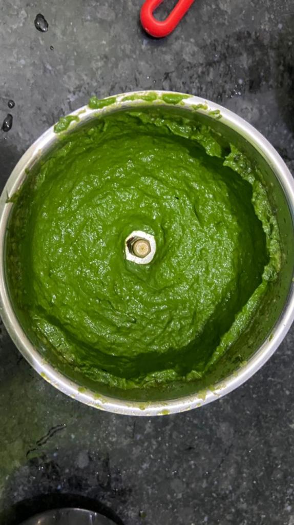 अब पीसा हुआ पालक डाले 5 मिनट तक पकाए।