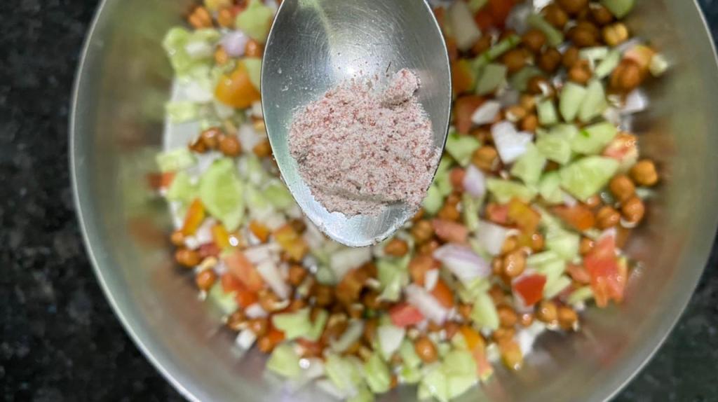 नीबू मिलाए धनिया पत्ती मिलाए। चना चाट रेडी है ।