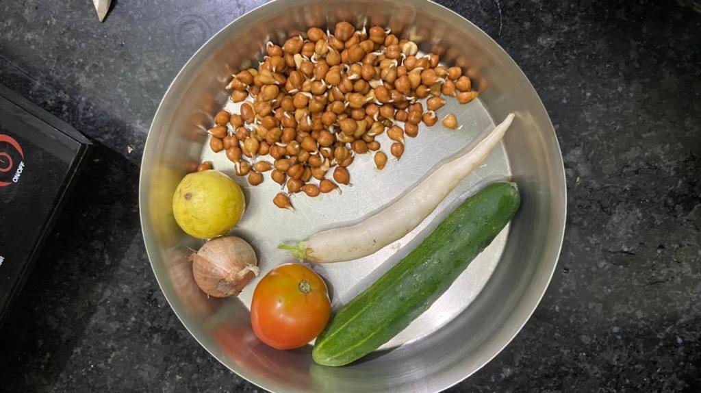 सबसे पहले मूली प्याज टमाटर खीरा सब को छोटा छोटा काट ले।